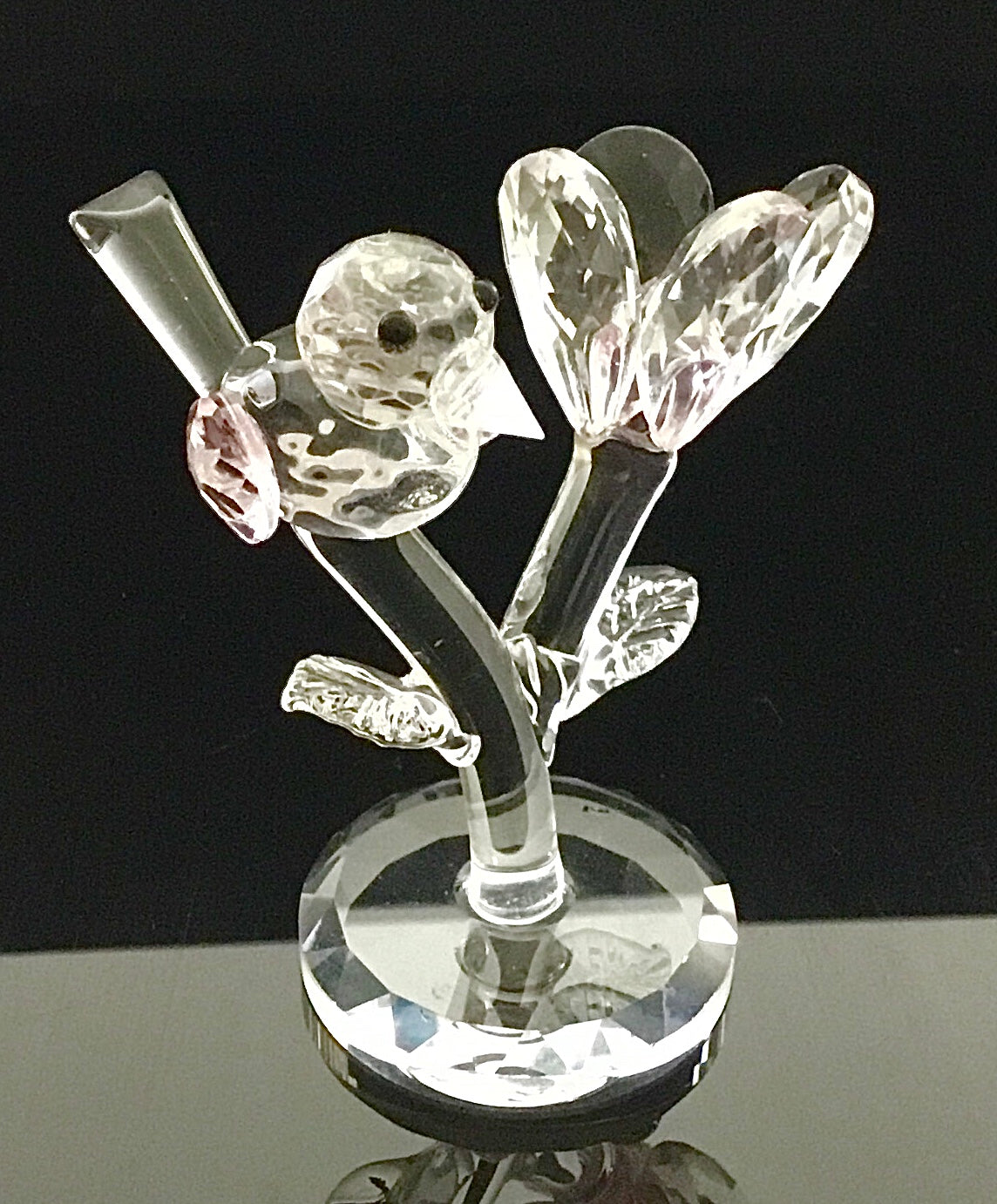 Bird on Tree Crystal Figurine Pink 8.5cm height 8cm wide
