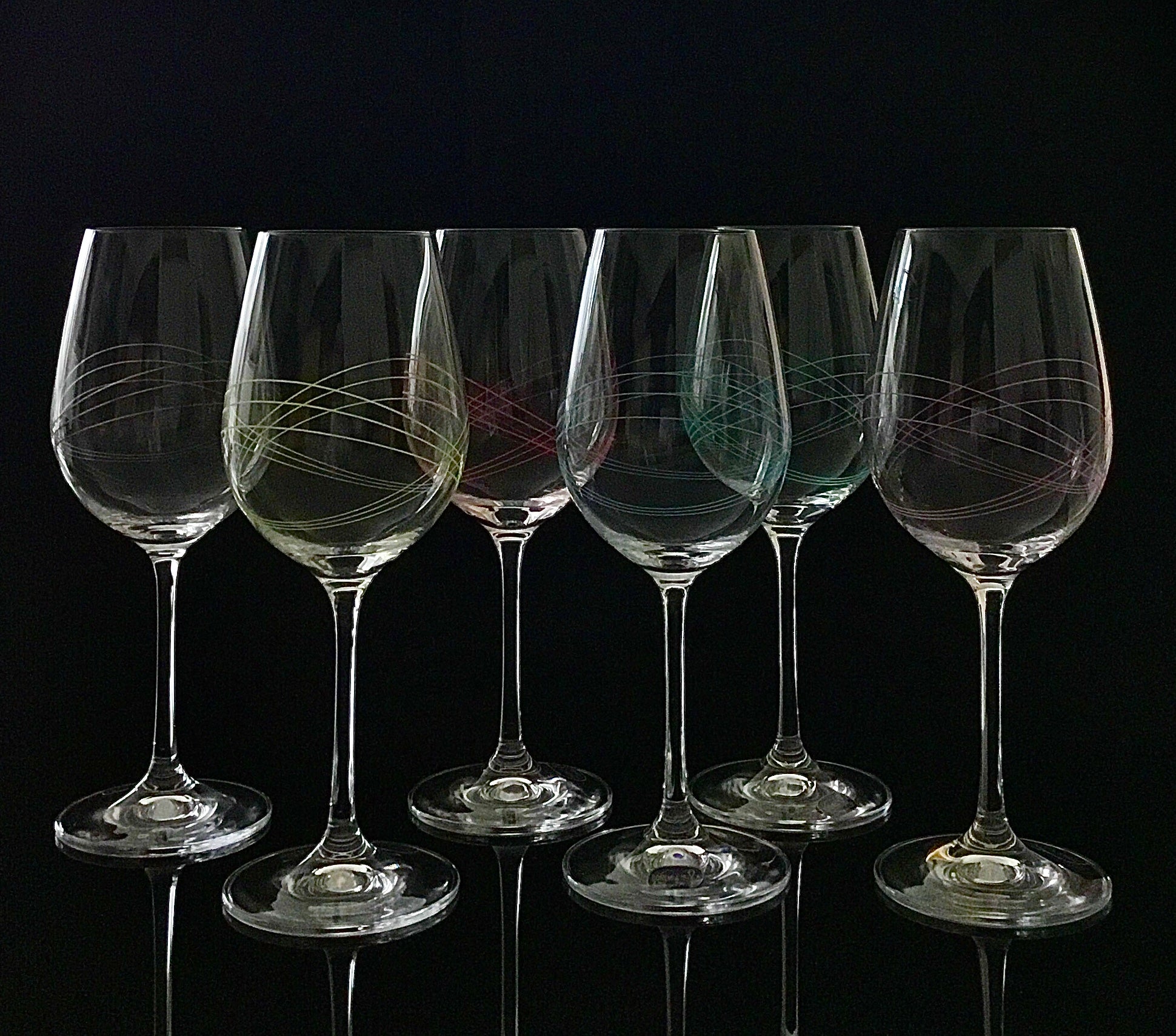 Bohemia Crystal Wine Glass in colored design 6 pc set 350 ml