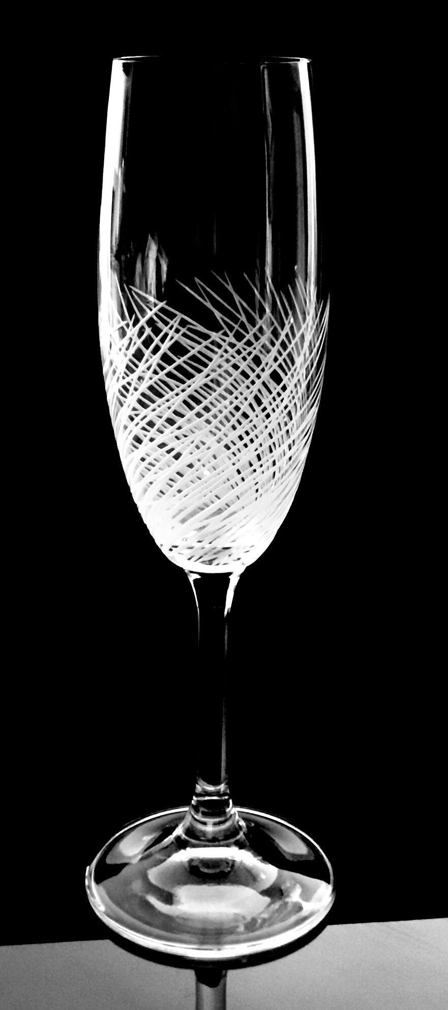 Flute glass Grass decor hand cut set of 6pc
