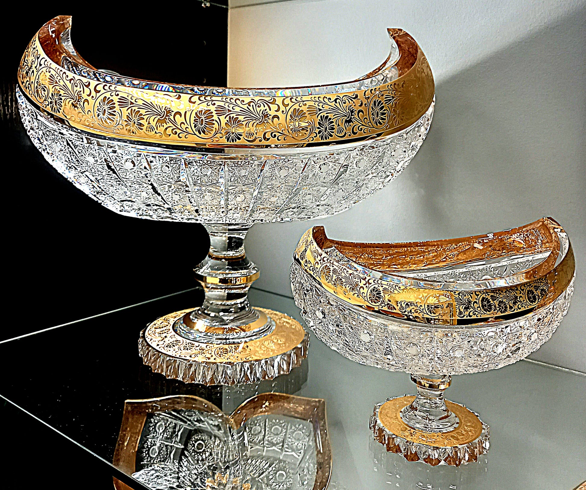Footed hand cut with gold inlay #1023 in 2 sizes