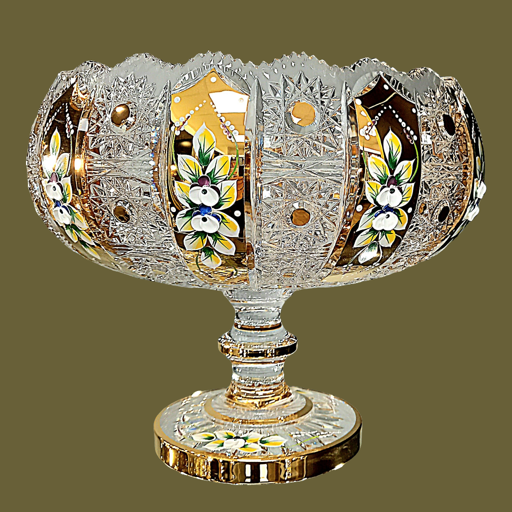 Footed hand cut crystal with gold enamel #1017