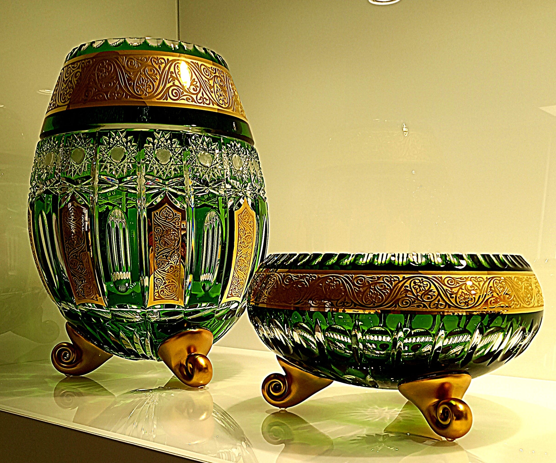 Green Crystal bowls hand cut gold on Demand