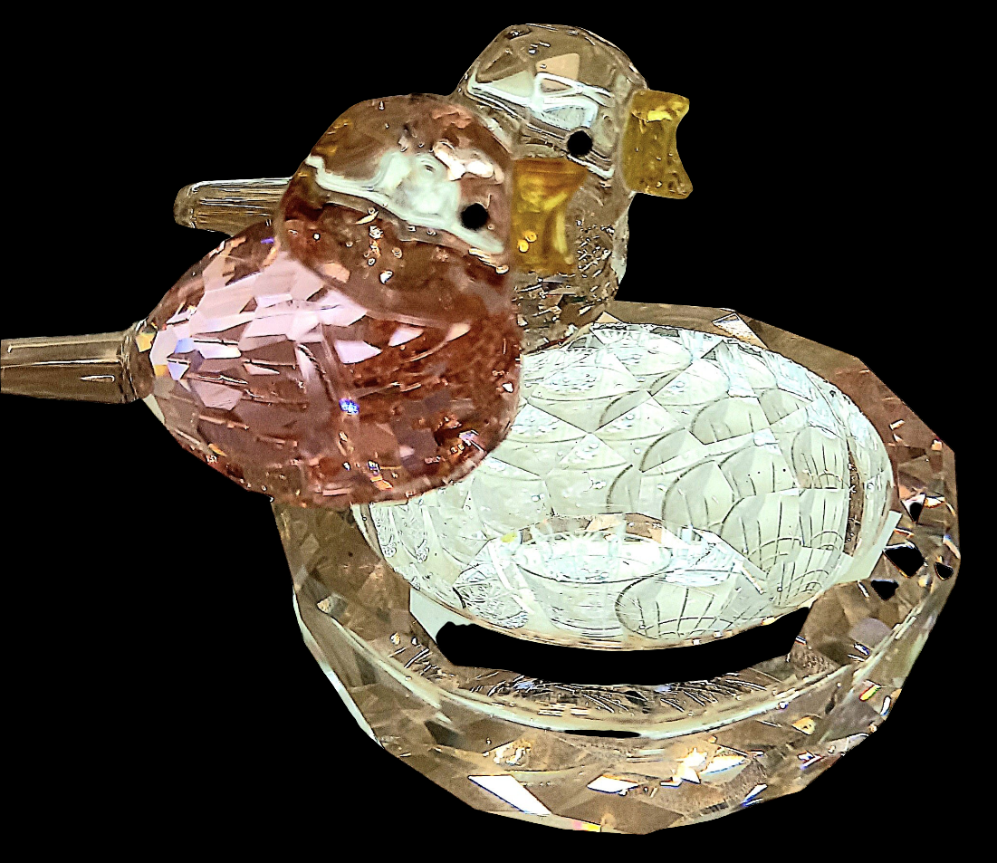 Beautiful Crystal Bird Figurine 8cm wide 5.5 height in pink and yellow