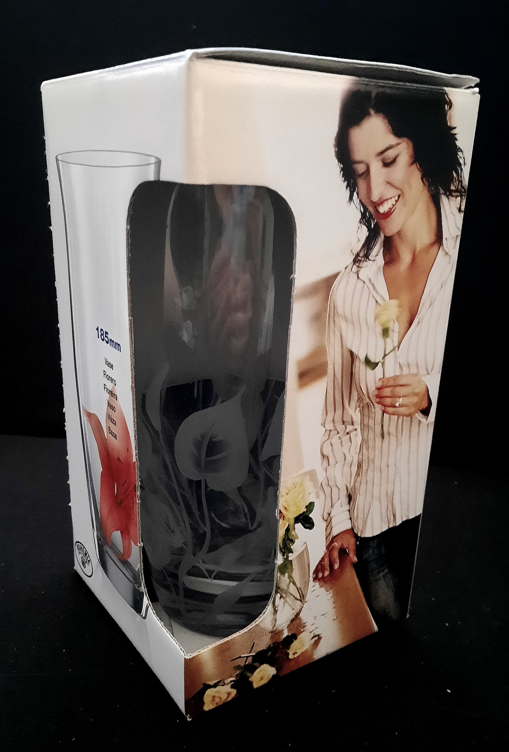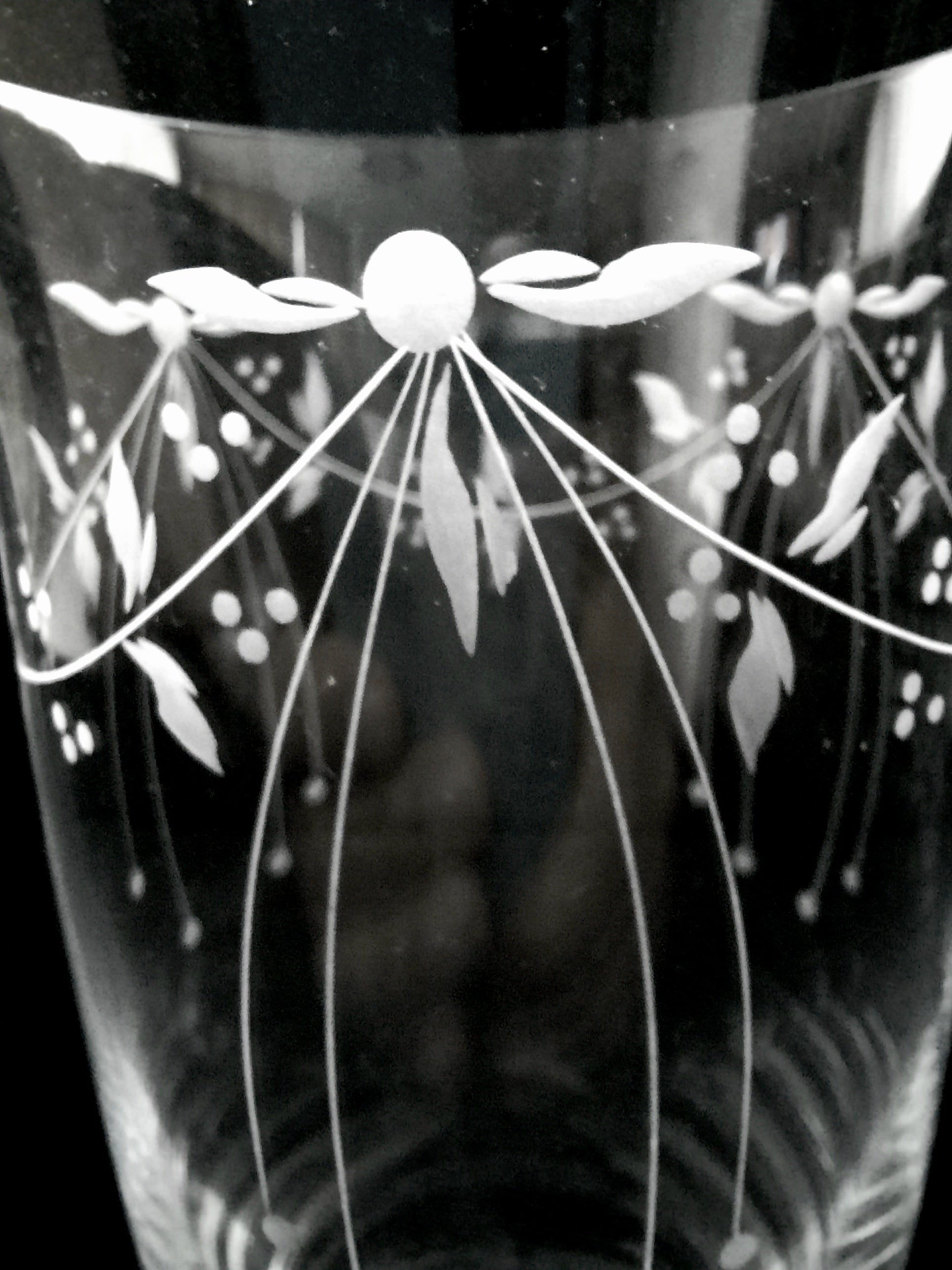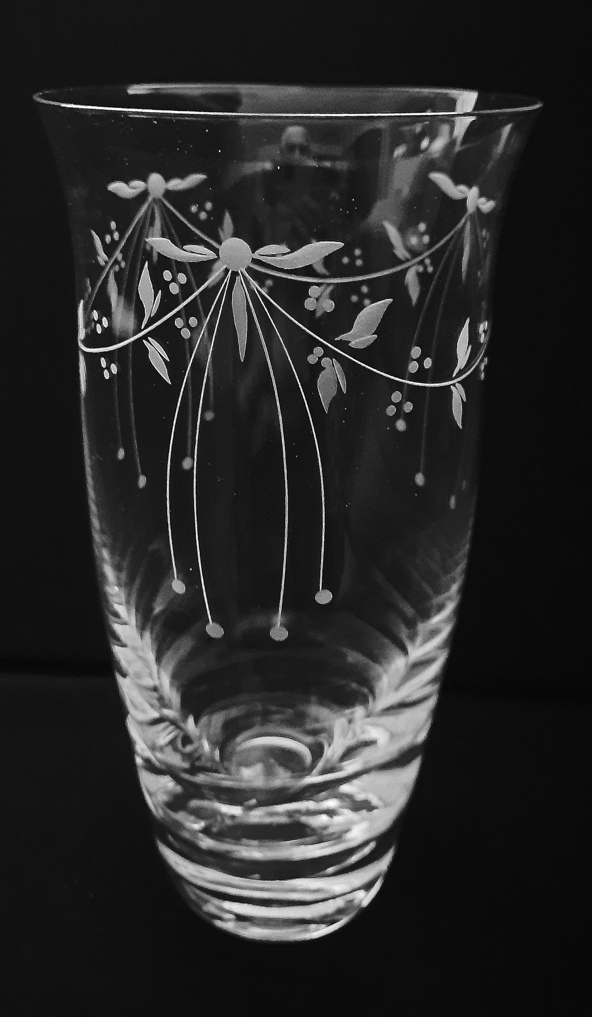 Bohemia Crystal vase 185mm high hand engraved leaves design