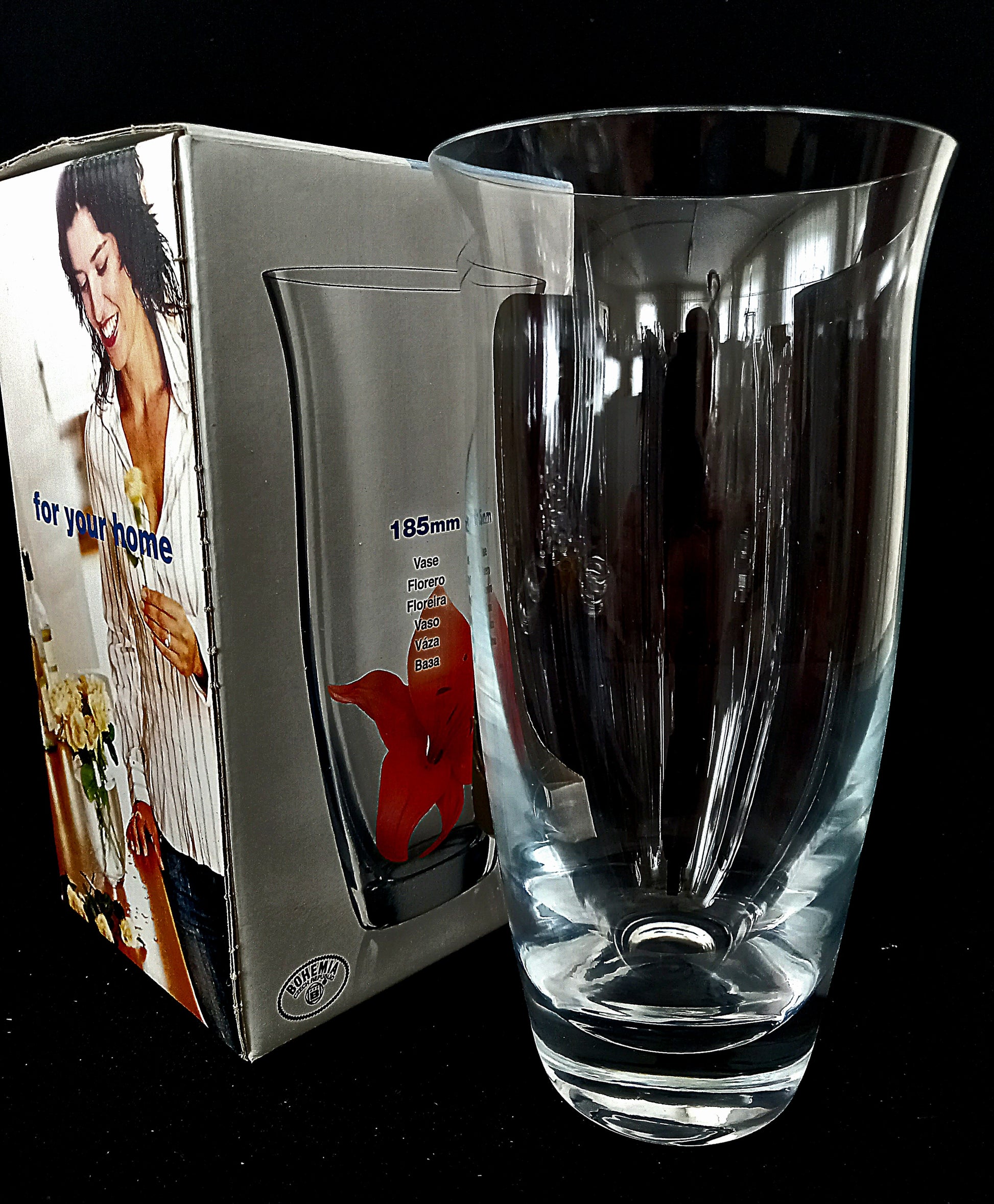 Vase Bohemia Crystal 185mm height in see thru colored box