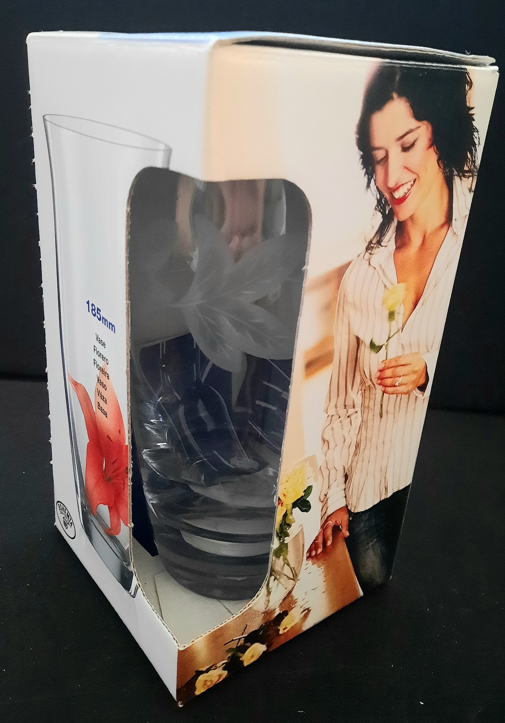Vase Bohemia Crystal engraved 185mm high in see thru colored box
