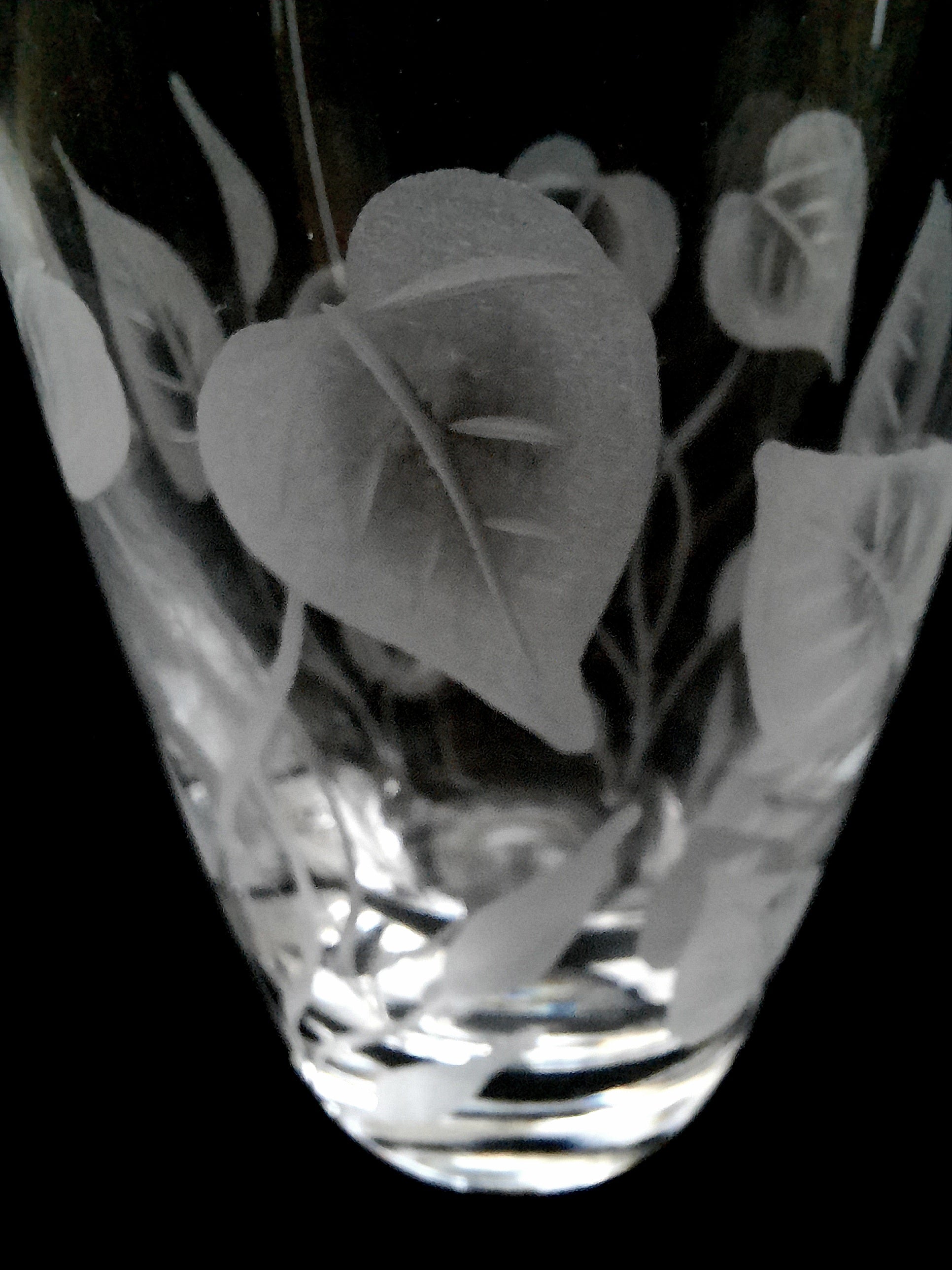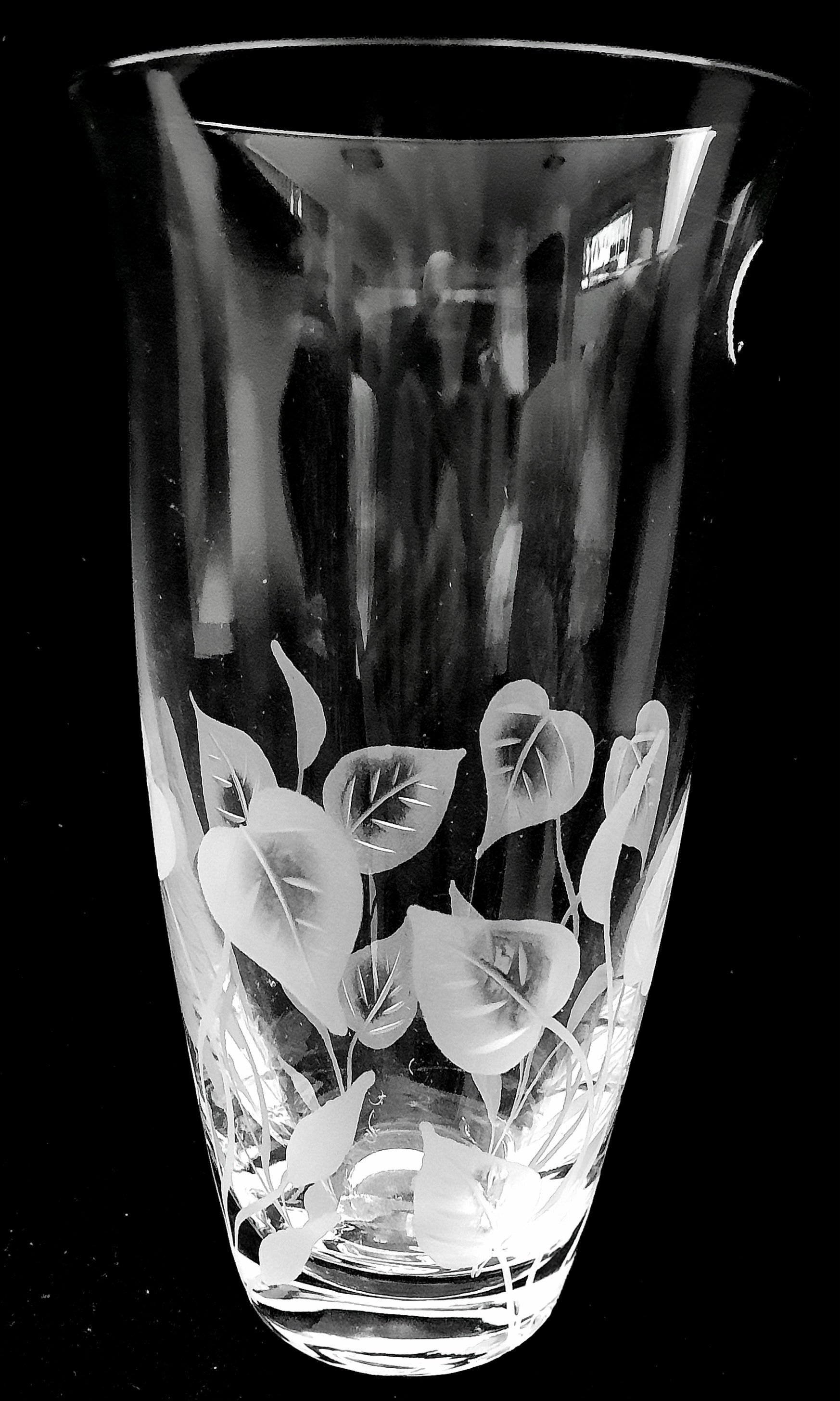 Vase Bohemia Crystal Engraved 185mm high in a see thru colored box
