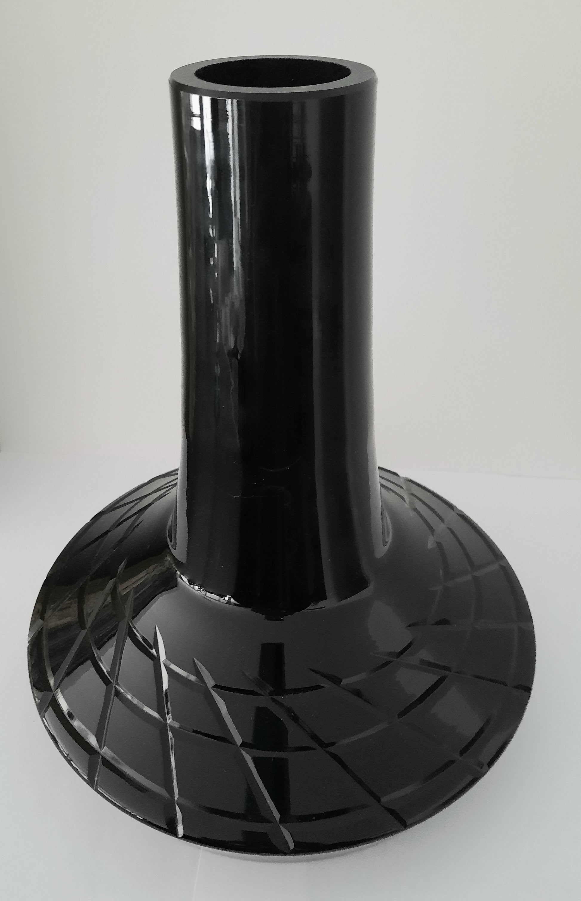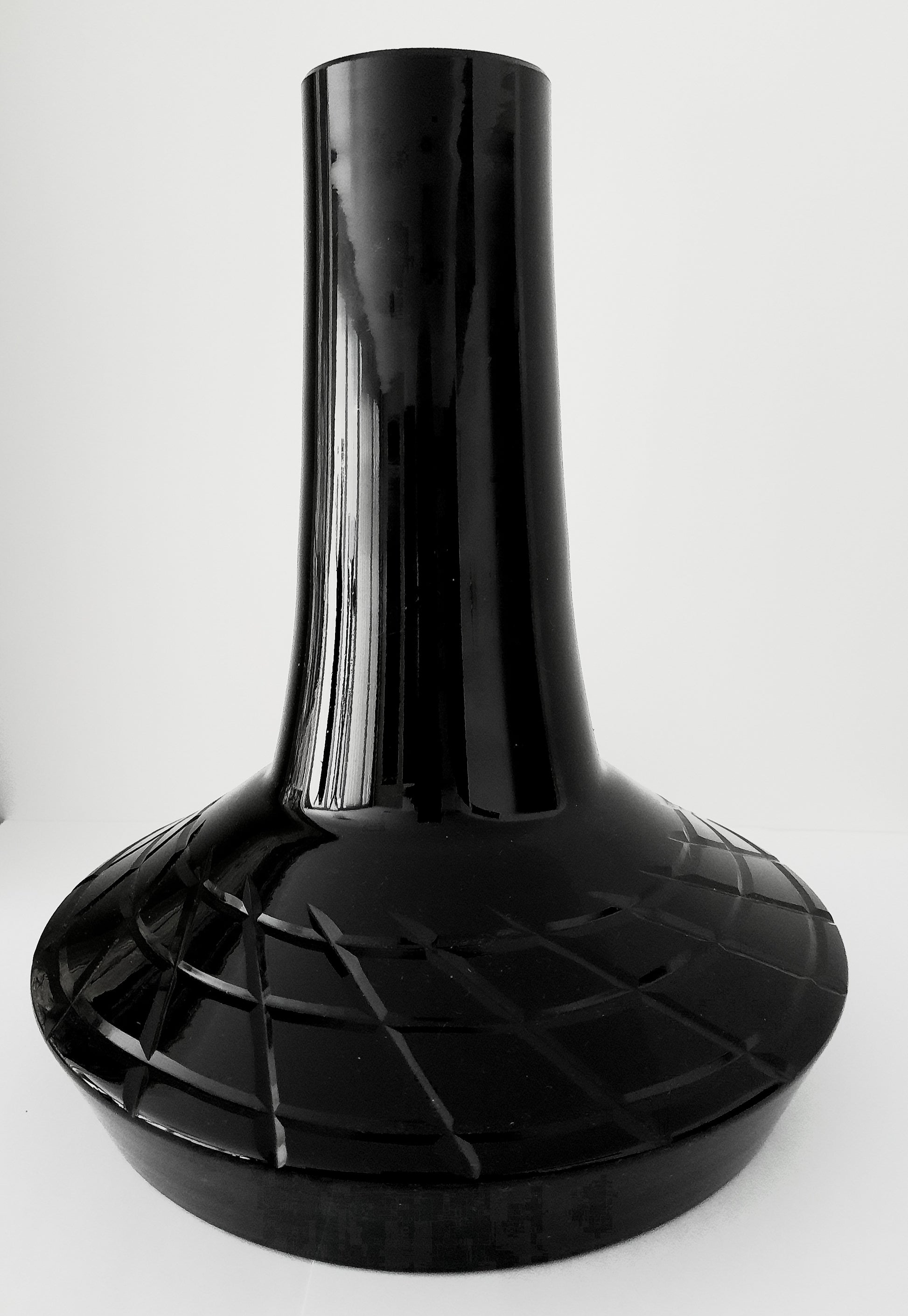 Vase Crystal Glass Black Hand Cut 25cm high base diamete4 19cm